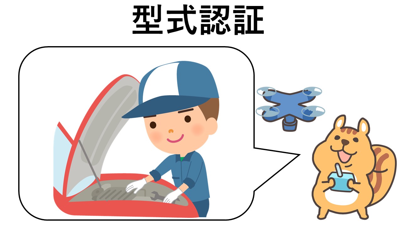 型式認証とは、国土交通大臣が、無人航空機の型式の設計及び製造過程について、安全基準および均一性基準に適合すると認める認証のこと(航空法第132条の16第3項参照)。