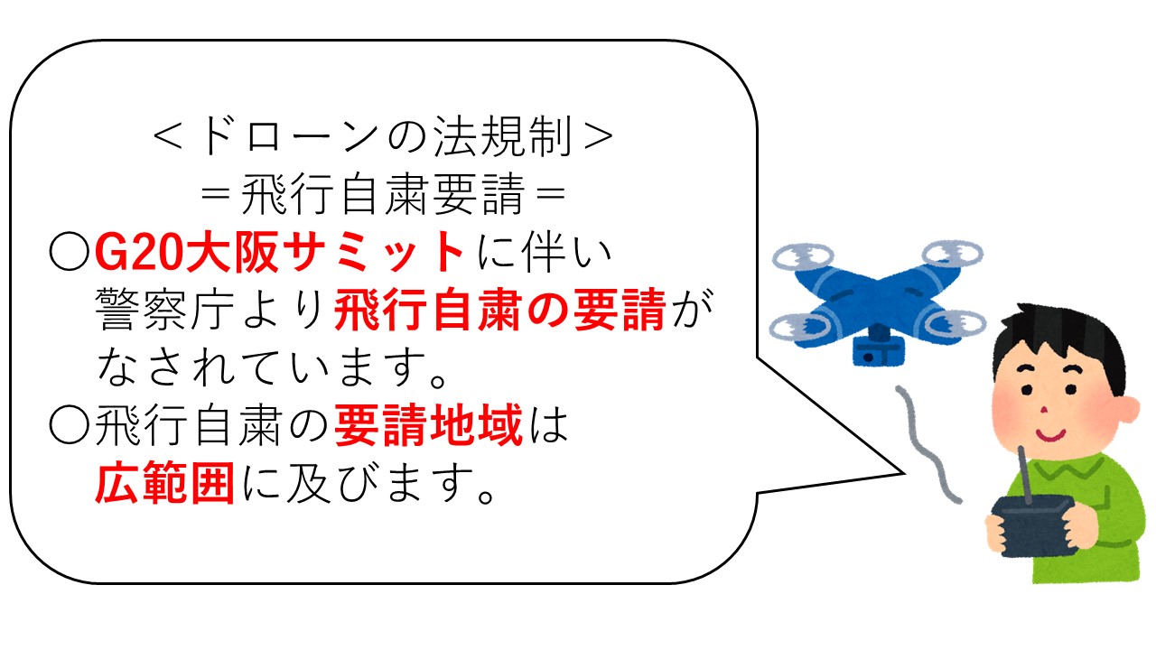 〇G20大阪サミット開催を受けて、警察庁より飛行の自粛要請がなされています。