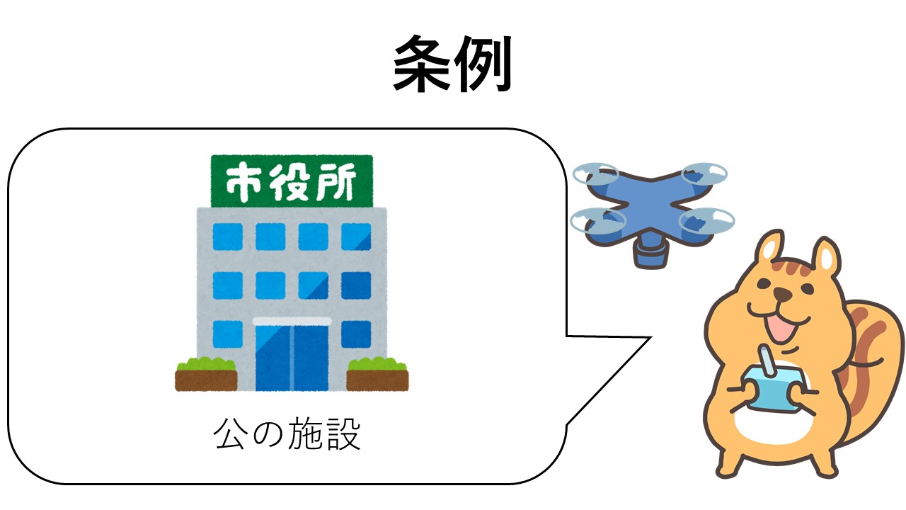 地方自治体が、法律(航空法・小型無人機逃避行禁止法)による規制に加えて、条例・庁舎管理規則(以下、「条例等」といいます)に基づき、ドローン等の無人航空機の飛行を制限することがあります。
