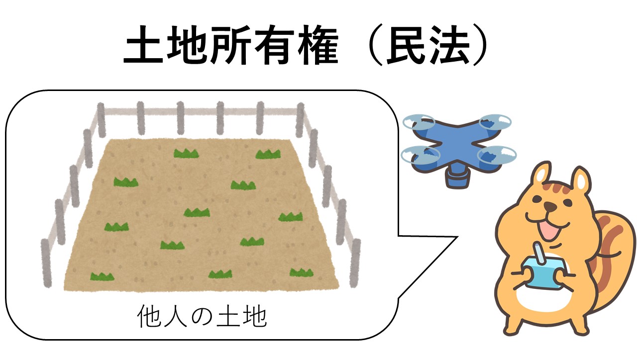 ドローンの飛行が、他人の土地の所有権を侵害する結果として、当該土地から出ていくことを求められる、あるいは、損害賠償請求を受けるにすぎません。すなわち、何らかの規制に違反したわけではありません。