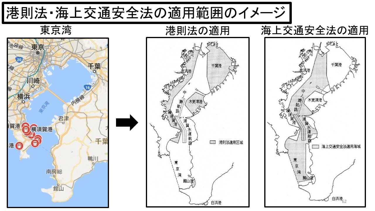 港則法と海上交通安全法は、どちらも海上交通の安全を目的としていますが、その適用される範囲(海域)が異なります。