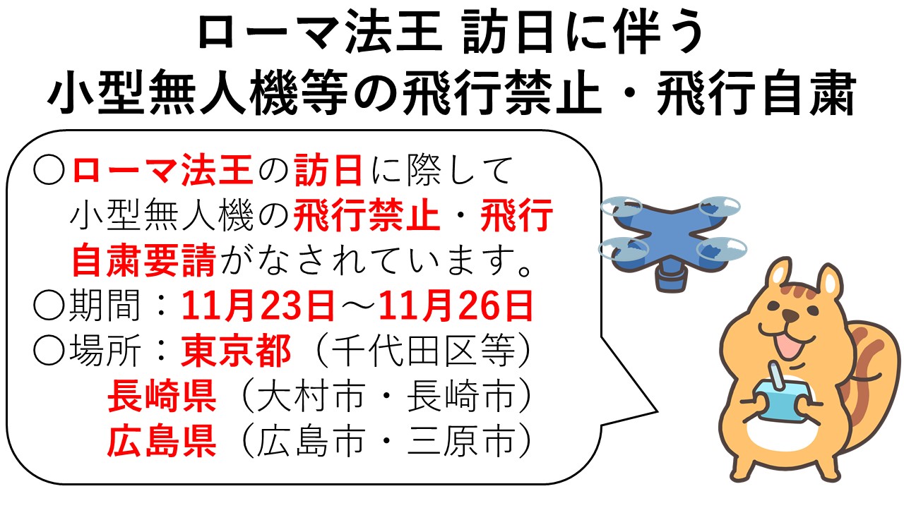 〇ローマ法王フランシスコ台下の訪日に際しての小型無人機等飛行禁止法による飛行禁止区域の指定