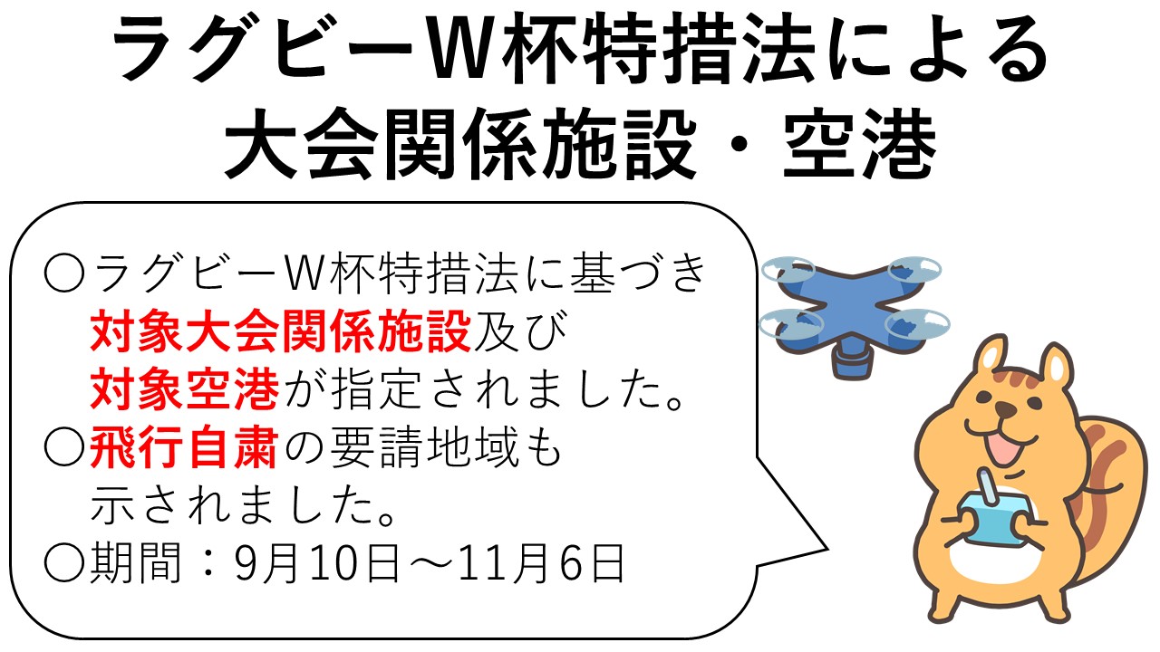 〇ラグビーワールドカップ2019の開催に伴い小型無人機等の飛行が禁止される空港及び期間の指定について(国土交通省)
