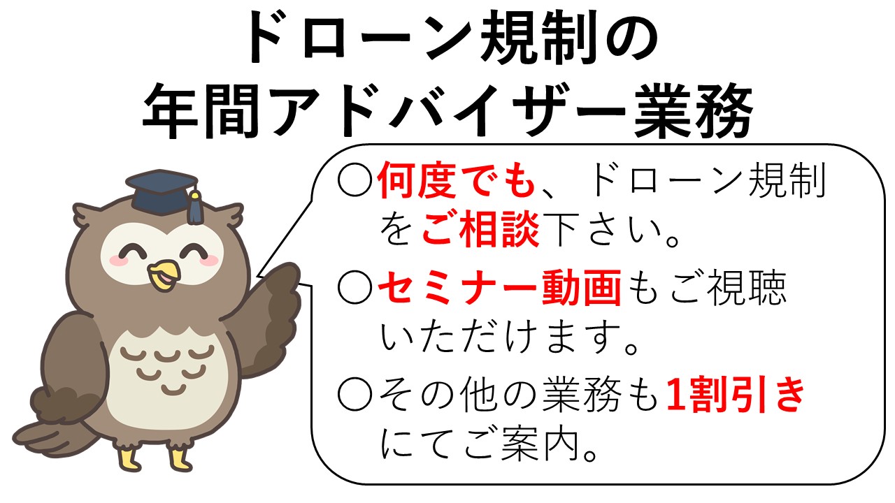 ドローンの法規制に関するご相談(法規制に関する一般的なご相談)を、1年間、何度でもお尋ねいただけます。
