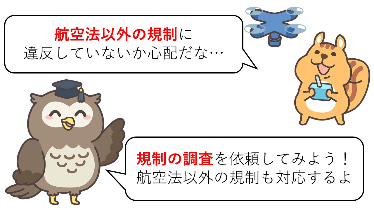 〇航空法および航空法以外の規制に関する書類作成のための調査として行います。