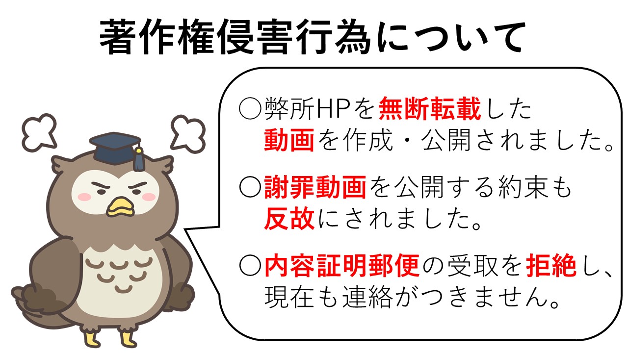 これらの事実を総称して、以下「本件著作権侵害」と言います。