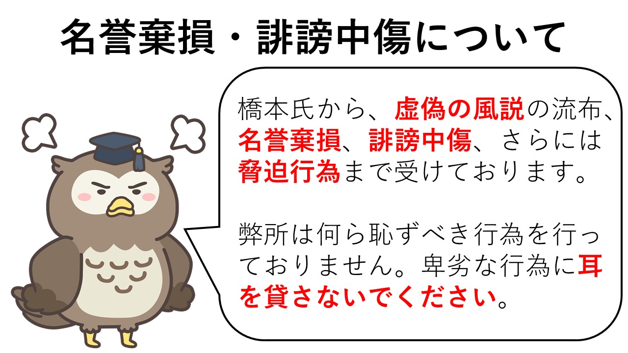謝罪動画の公開/謝罪文の掲載という約束を反故にしたのみならず、誤った法解釈を振りかざす橋本氏に厳重に抗議いたします。