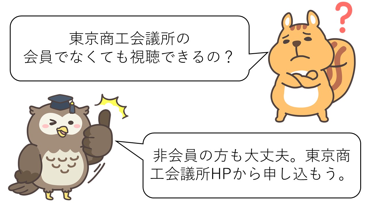 東京商工会様主催となっていますが、東京以外の方でも、非会員の方(東京商工会議所に加入されていない方)もご視聴いただけます。