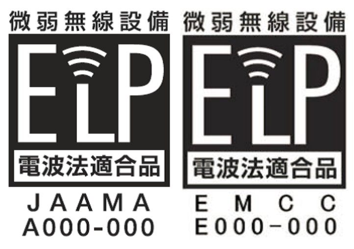 なお、全国自動車用品工業会・電波環境協議会が指定した試験機関による公正な試験が行われ、微弱無線設備の技術基準に適合していると認められた機器には、「微弱無線適合マーク(ELPマーク)」が表示されています(微弱無線設備登録制度)。