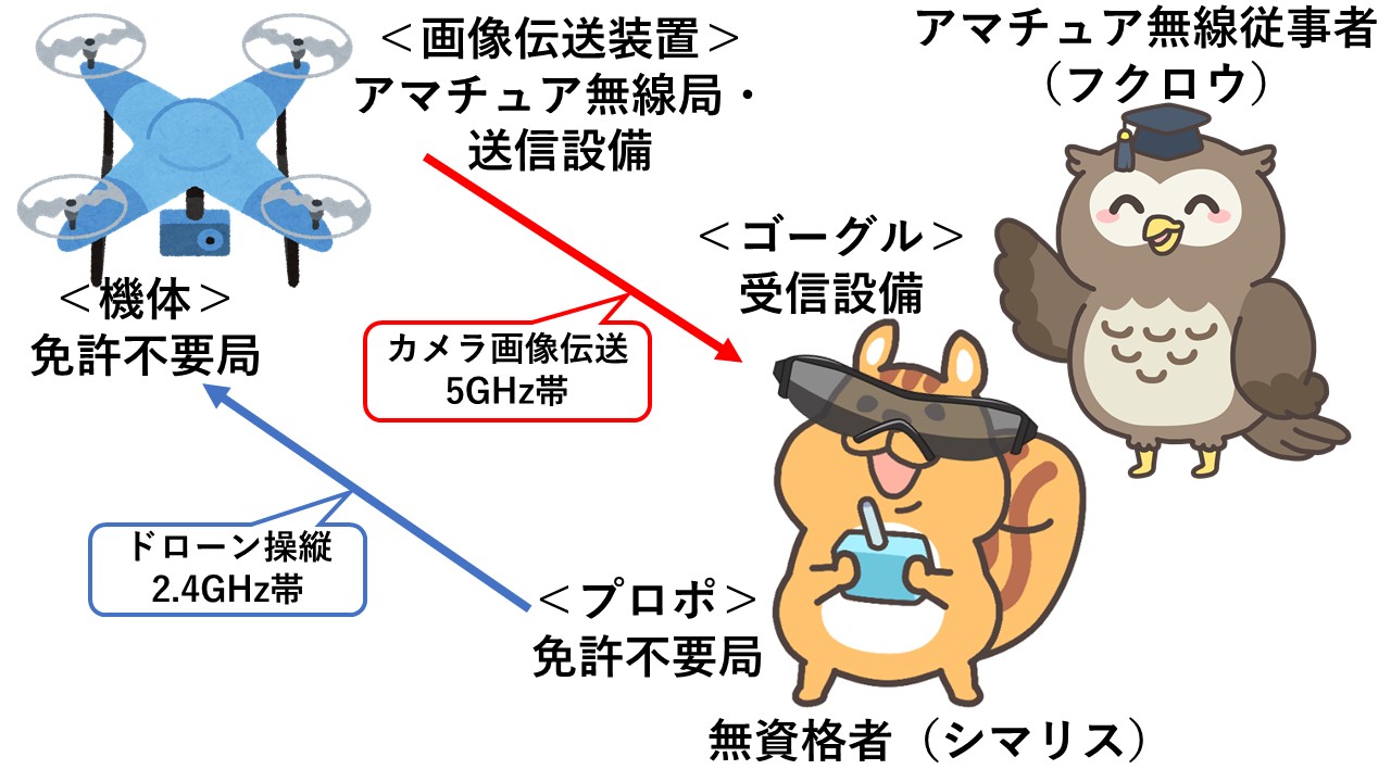 〇アマチュア無線によるFPVドローンの利用には、アマチュア無線技士資格・アマチュア無線局免許が必要です。