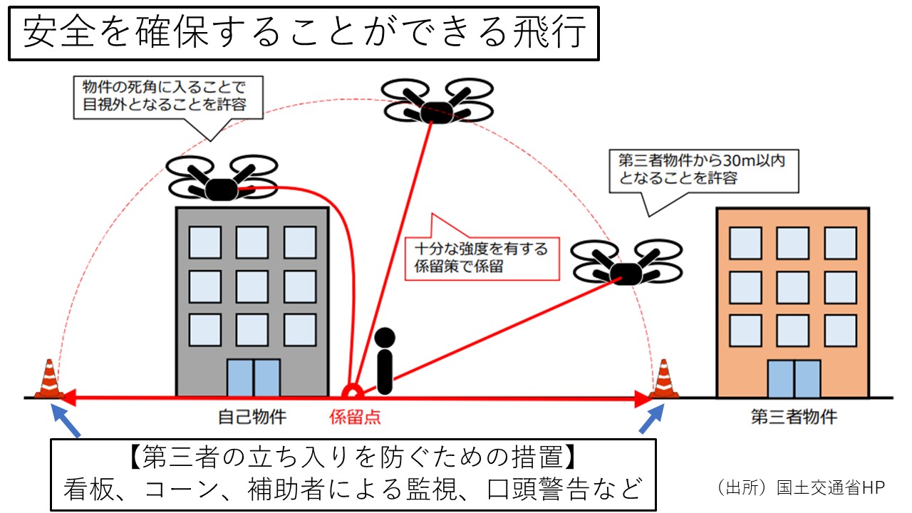 〇国土交通大臣の許可・承認を必要としない「安全を確保することができる飛行」の内容が明らかになりました。