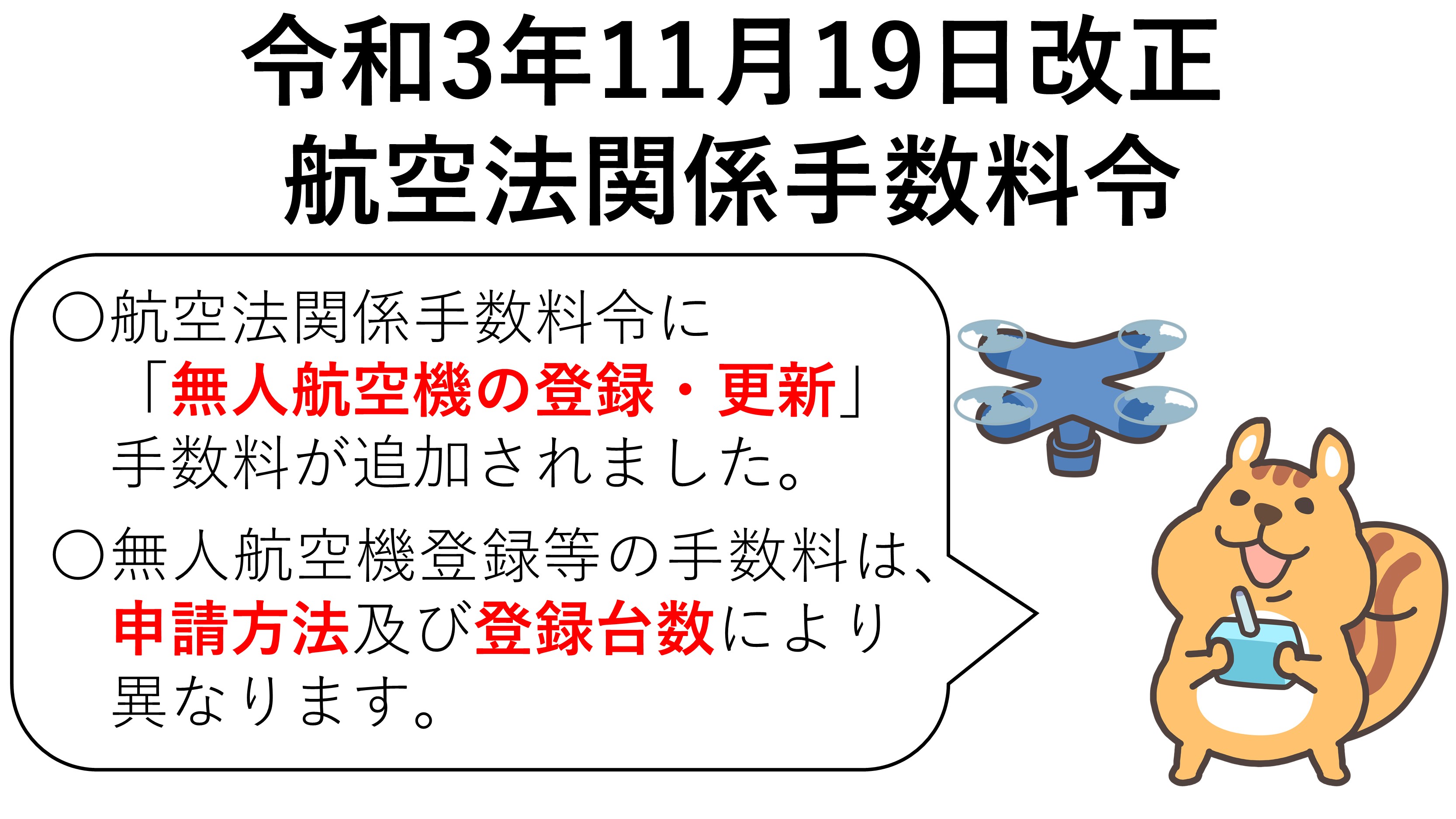 令和03年11月19日改正 航空法関係手数料令◆無人航空機の登録等