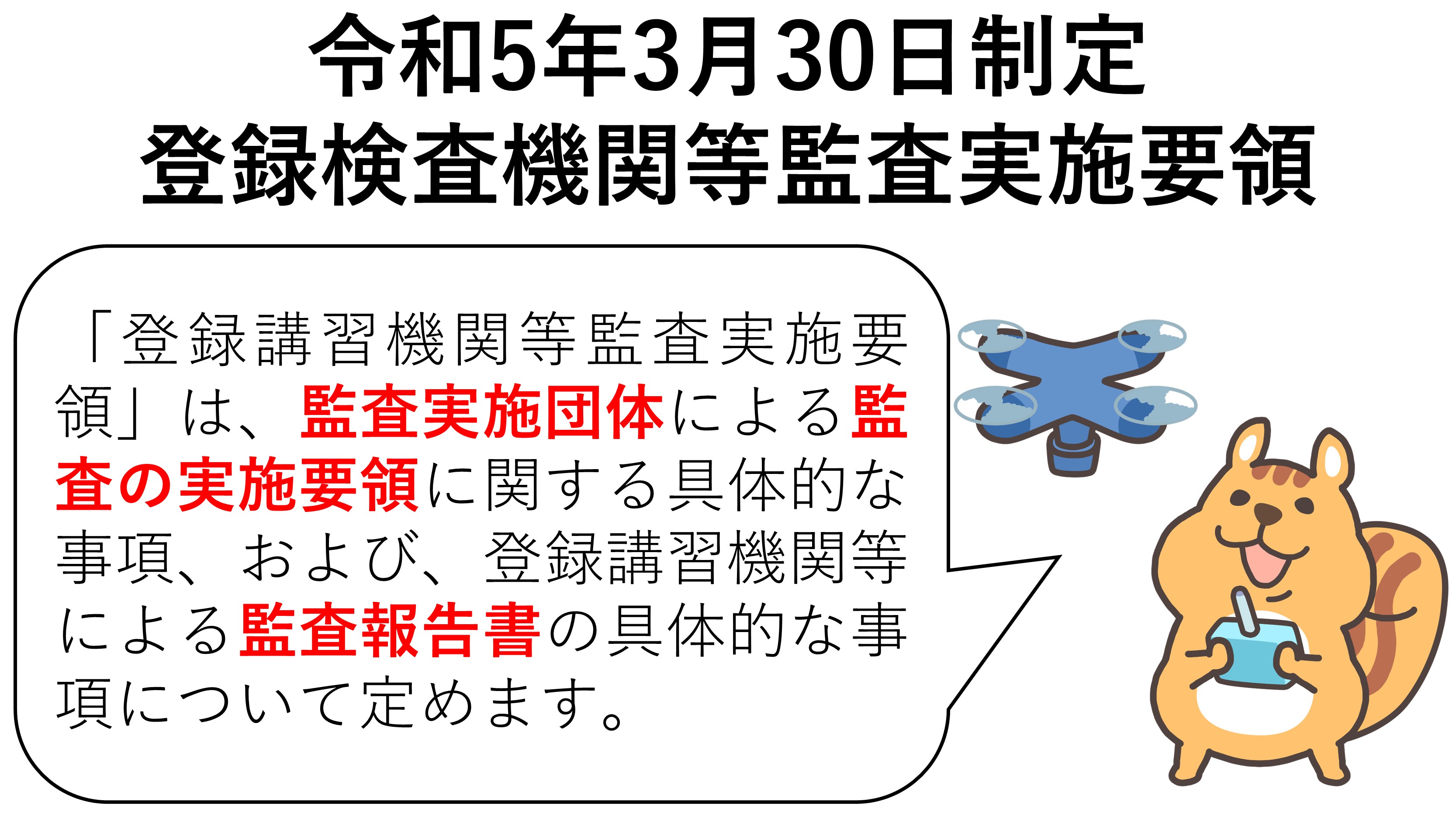 登録講習機関及び登録更新講習機関は、無人航空機講習が適切に行われていることを確認するために、毎事業年度、外部の者による監査を受検することが求められます。