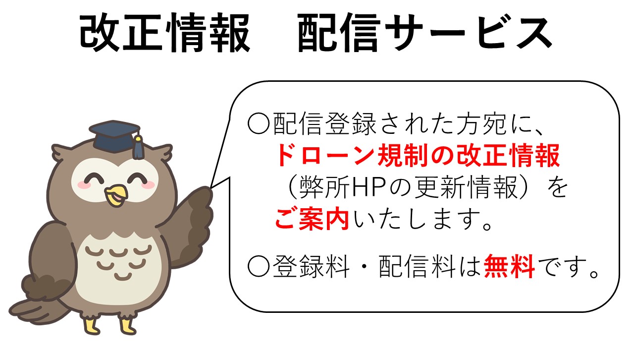 メールフォーム「【ドローン】改正情報の配信登録」より必要事項を記入し、送信してください。