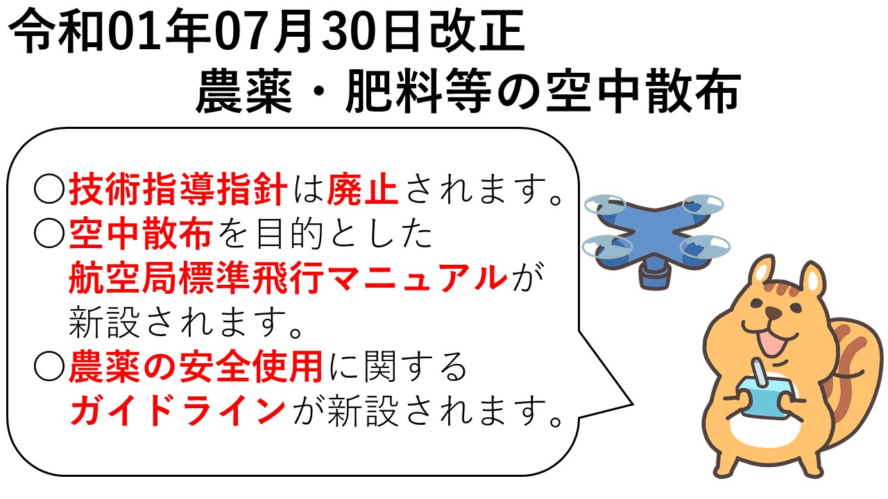 〇「空中散布における無人航空機利用技術指導指針」(技術指導指針)は廃止されました。