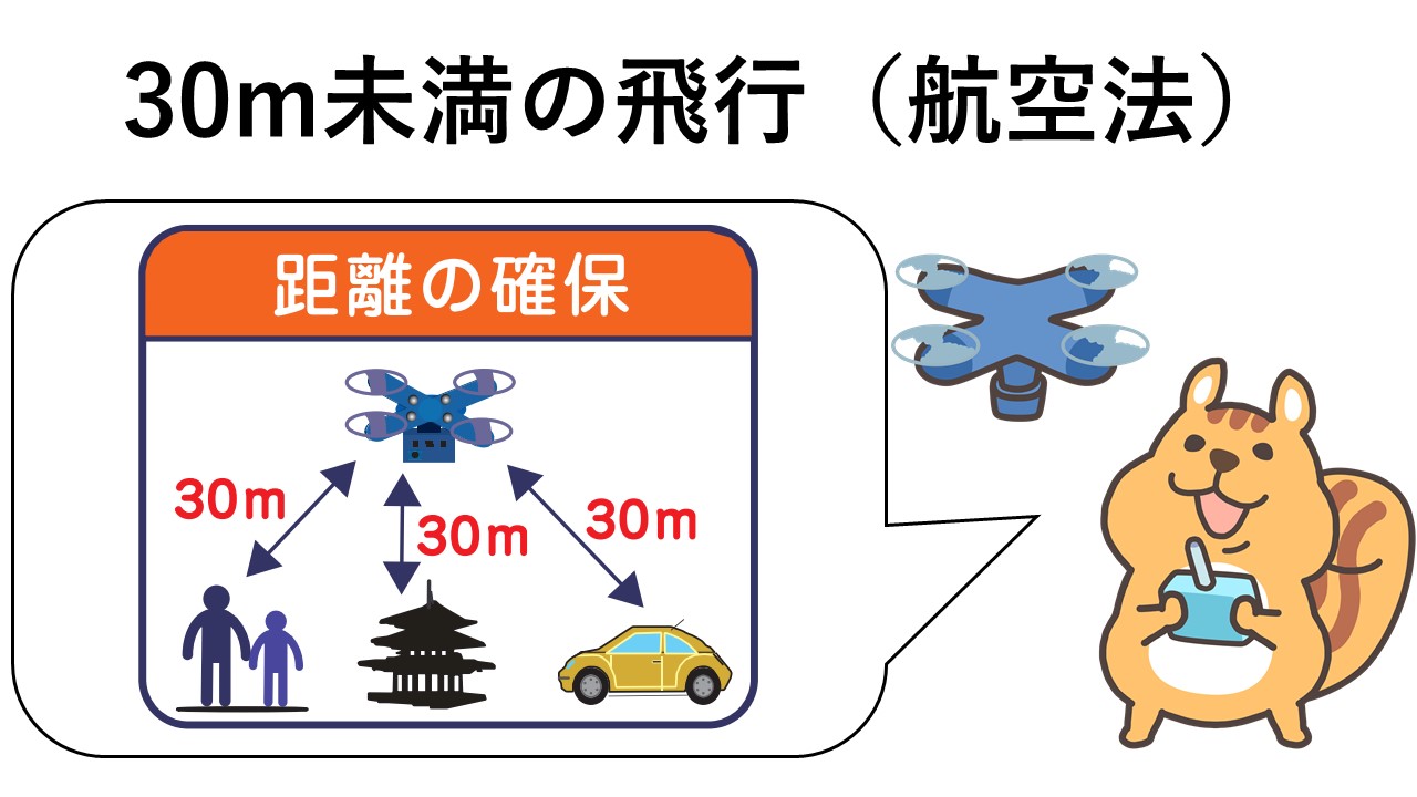 無人航空機の飛行にあたり、人または物件との間に30mの距離を保たなければならない