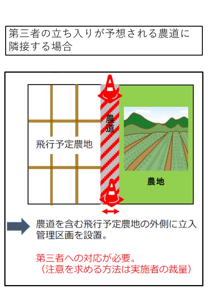 〇補助者を配置せずに空中散布を行うためには、「立入管理区画」を設定する必要があります。