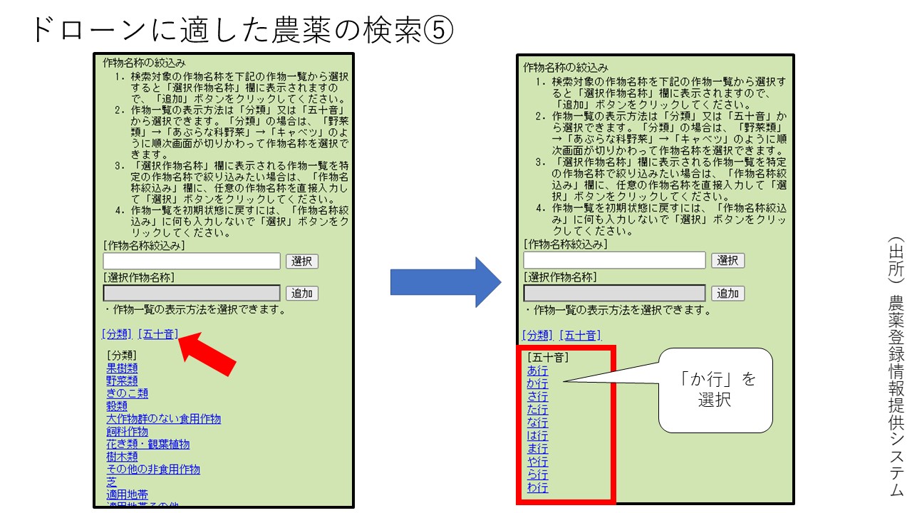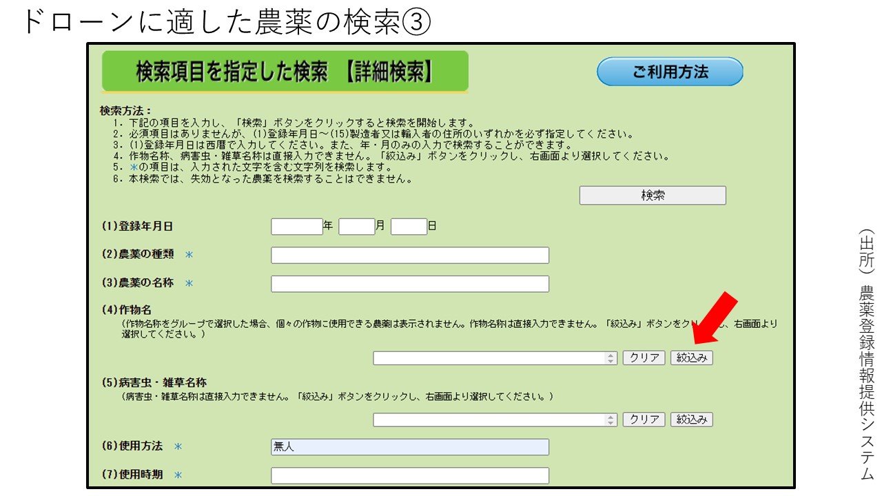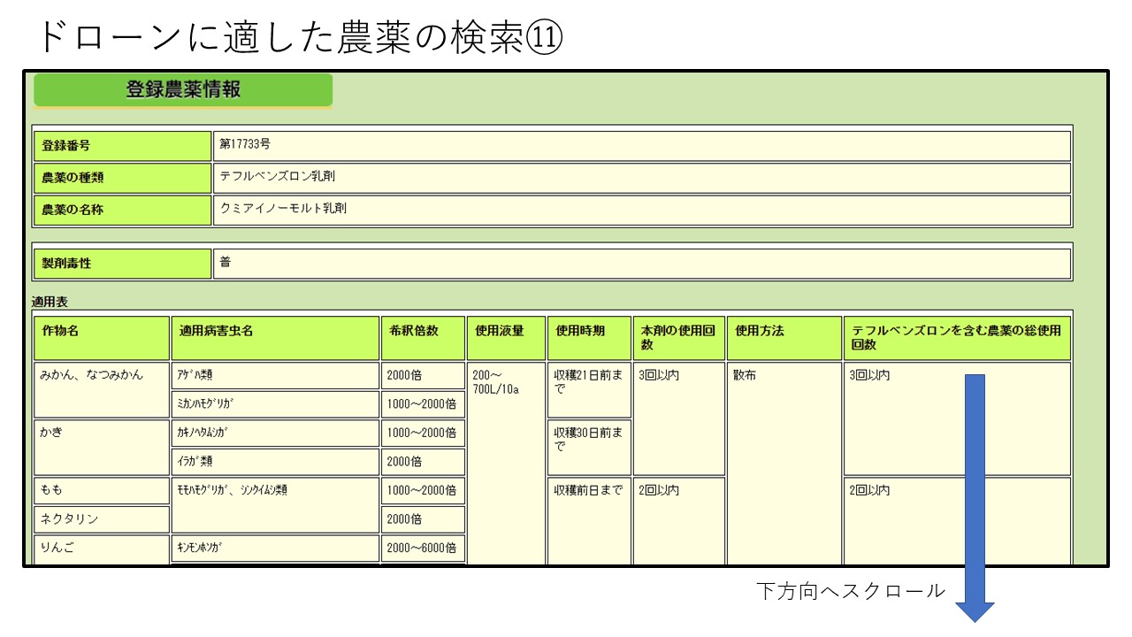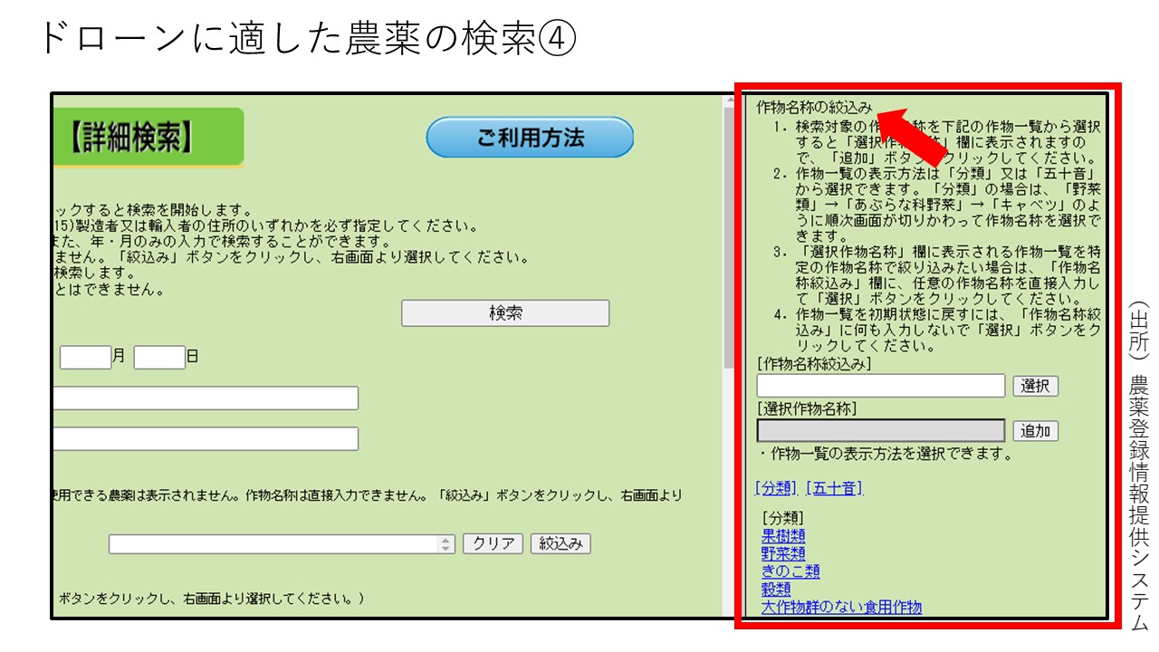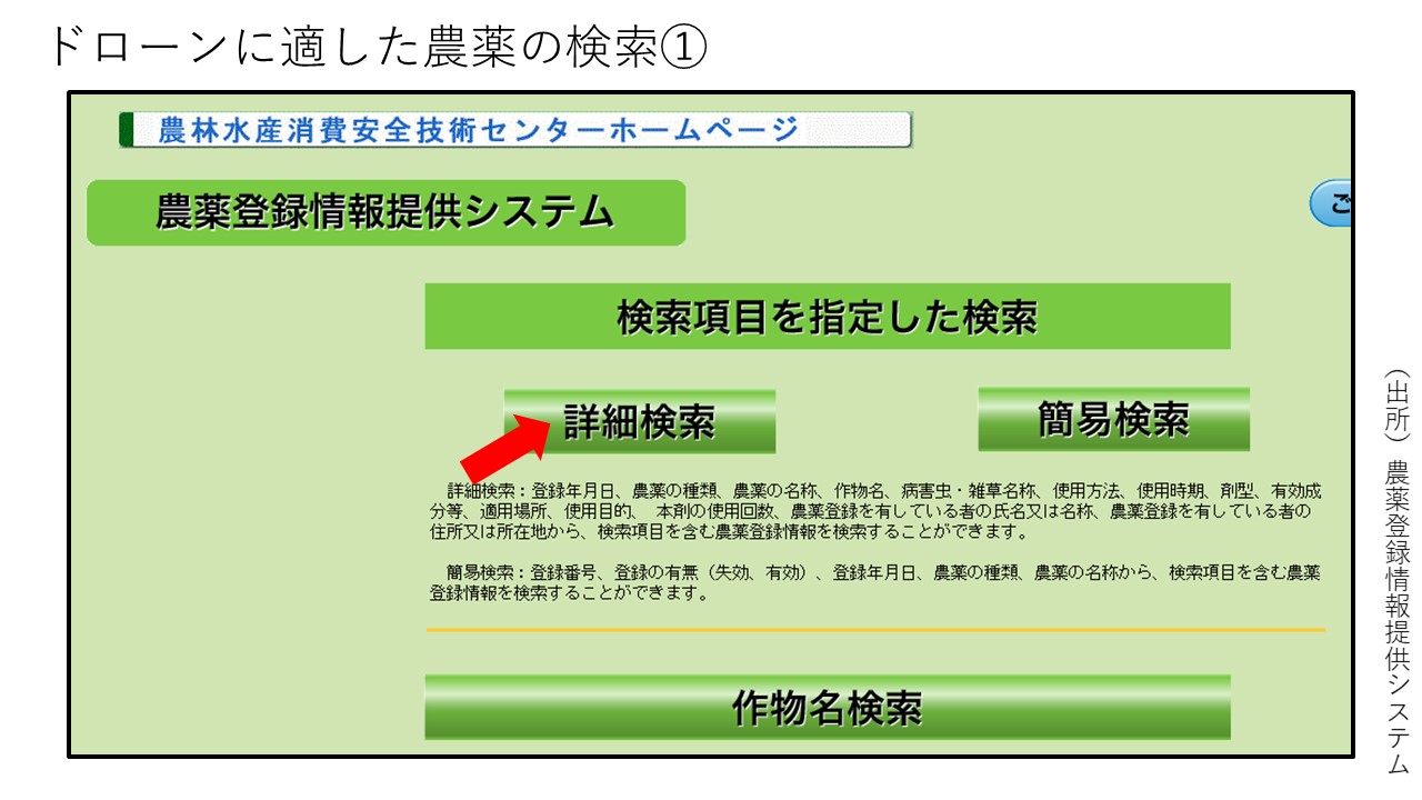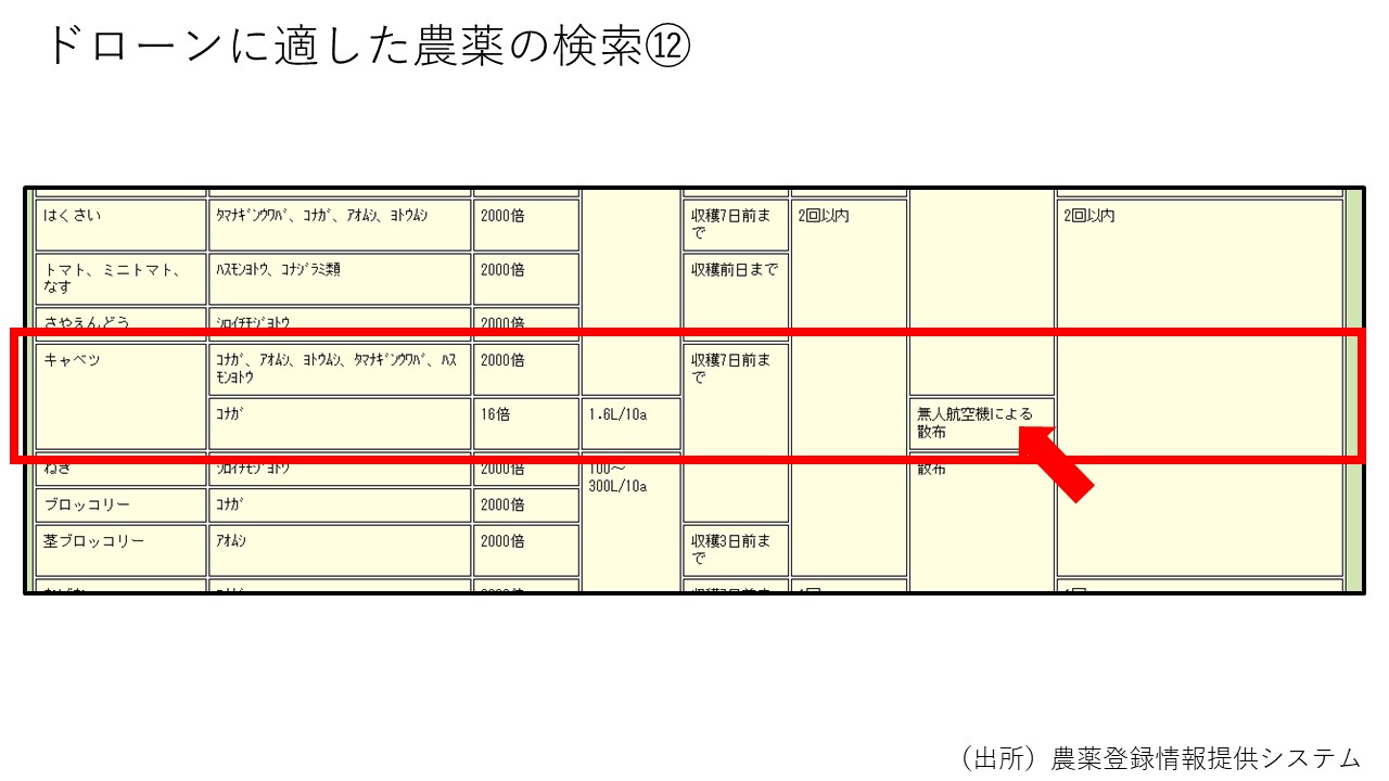 ドローンに適した農薬の検索