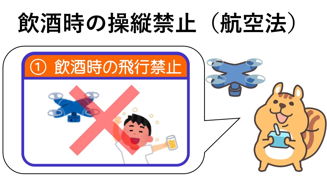 〇アルコール又は薬物の影響により正常な飛行ができない恐れがある間の無人航空機の飛行は禁止されます。