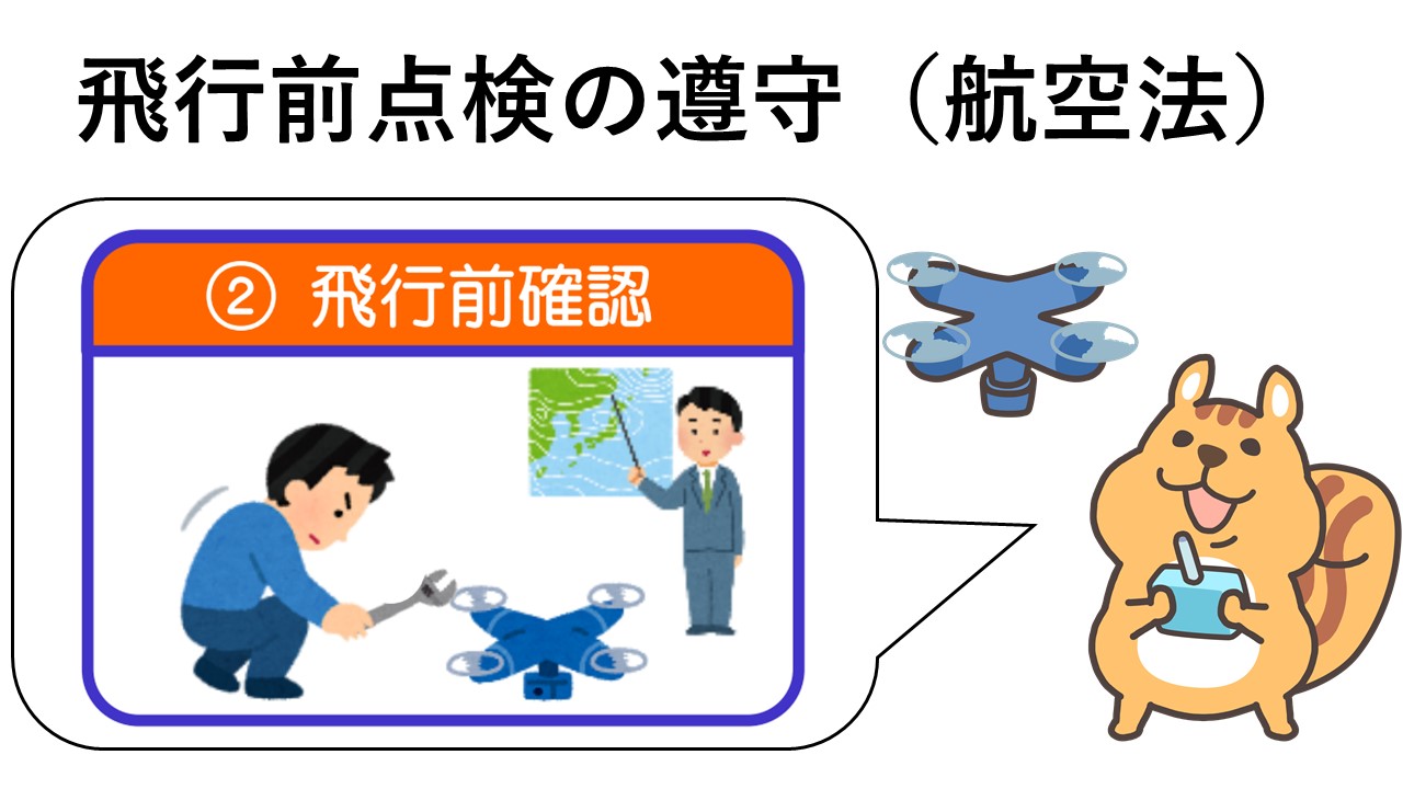 無人航空機が飛行に支障がないこと、その他飛行に必要な準備が整っていることを確認した後でなければ、無人航空機を飛行させることはできない。