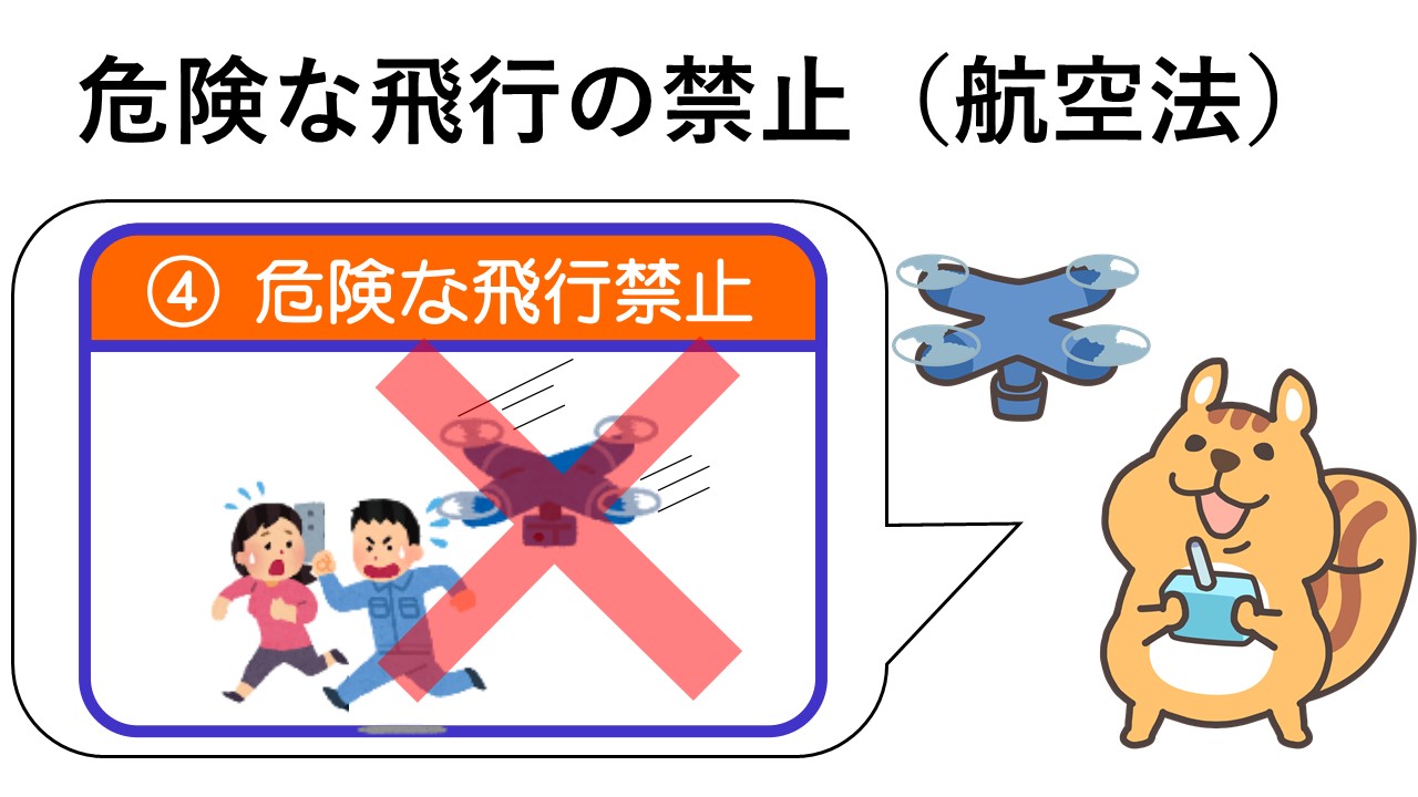 〇危険な飛行の禁止については、「国土交通大臣の承認」の対象ではなく、遵守が求められます。すなわち「承認による例外」は認められません。