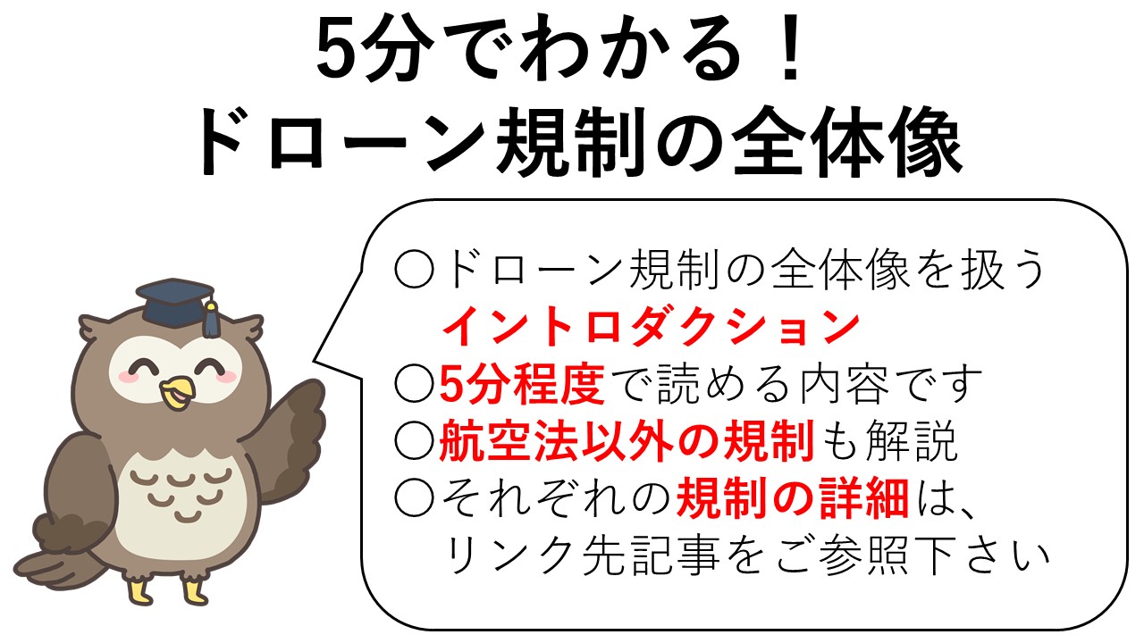 この記事は、ドローンの法規制を初めて学ばれる方に、ドローン規制の全体像を把握していただくためのガイダンスとして作成しました。
